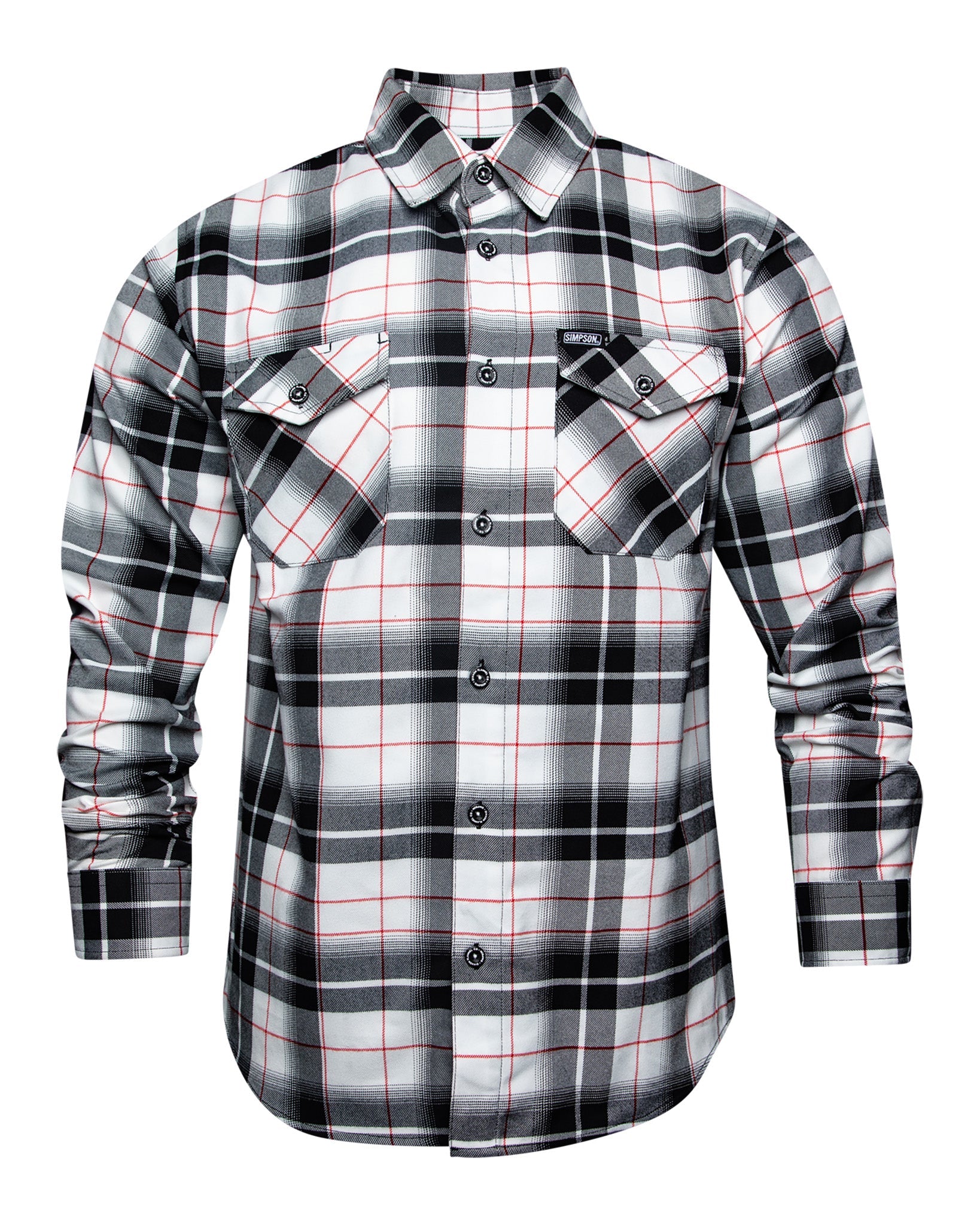 Built for the ones who never back down from the grind, the Simpson Flannel brings that bold, high-octane energy to your everyday lineup. Inspired by the legacy of performance and precision, this collab piece mixes clean white, black, and red plaid with all the durability you expect from Dixxon. Soft, breathable, and ready for anything, it’s your go-to layer whether you're in the shop, on the track, or just dialing up the attitude.
