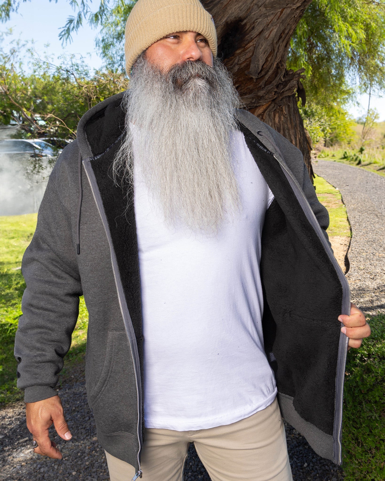 • Men’s Heather Charcoal, sherpa lined zip up hoodie