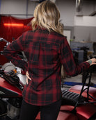 Celebrating 125 years of legendary rides, the Women’s Indian Motorcycle 125th Anniversary Flannel delivers bold red and black plaid with heritage-driven attitude. This snap-front collab pairs iconic moto energy with a flattering, easy-to-wear silhouette built for everyday movement.