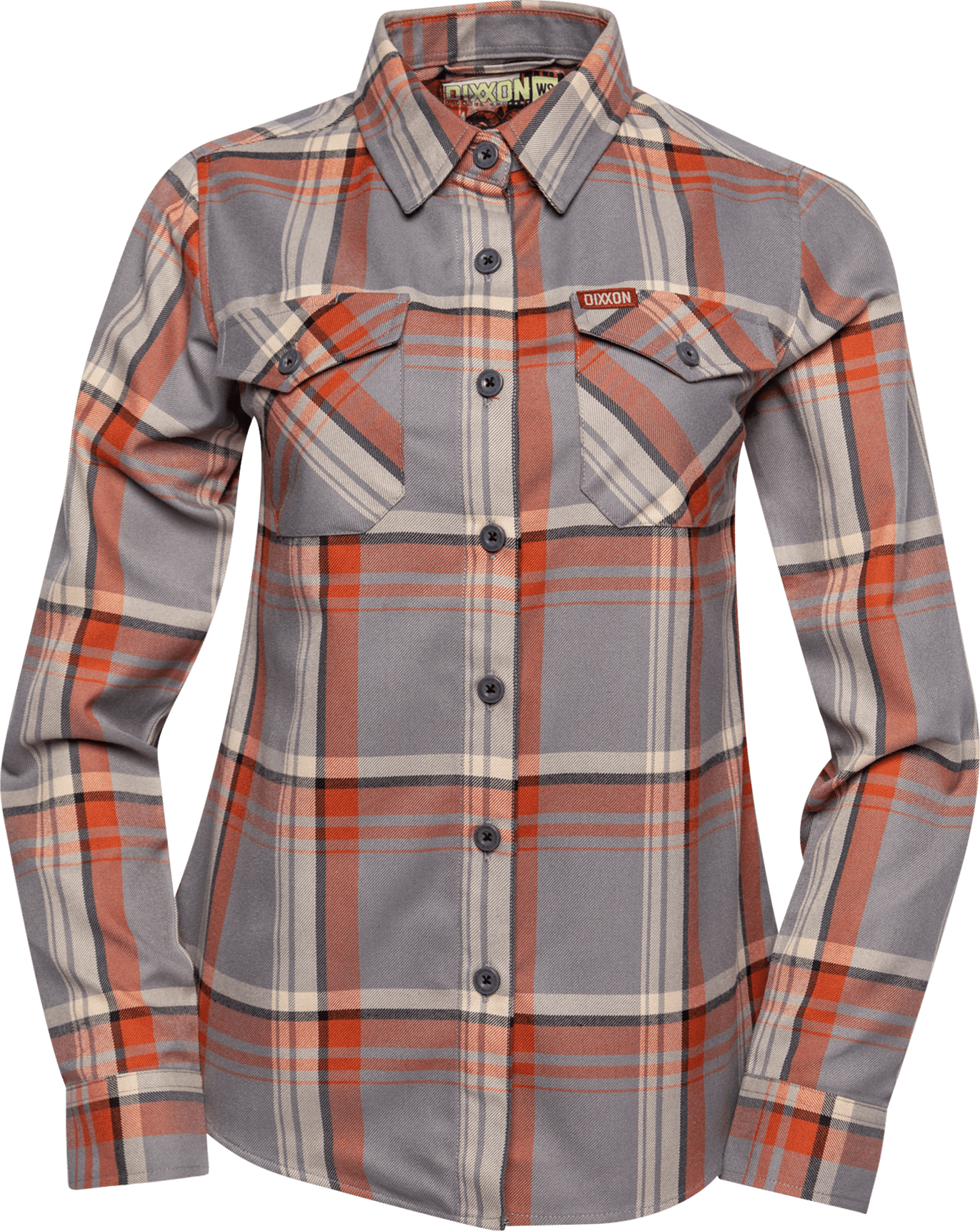 Warm tones meet everyday edge in the Women’s Zion Flannel, blending gray, orange, tan, and black into a bold plaid that stands out without trying too hard. Designed for comfort and versatility, this piece brings a polished look with a durable feel that works from day to night. Made with Dixxon’s signature D-Tech™ blend, it offers breathable wear and effortless upkeep.