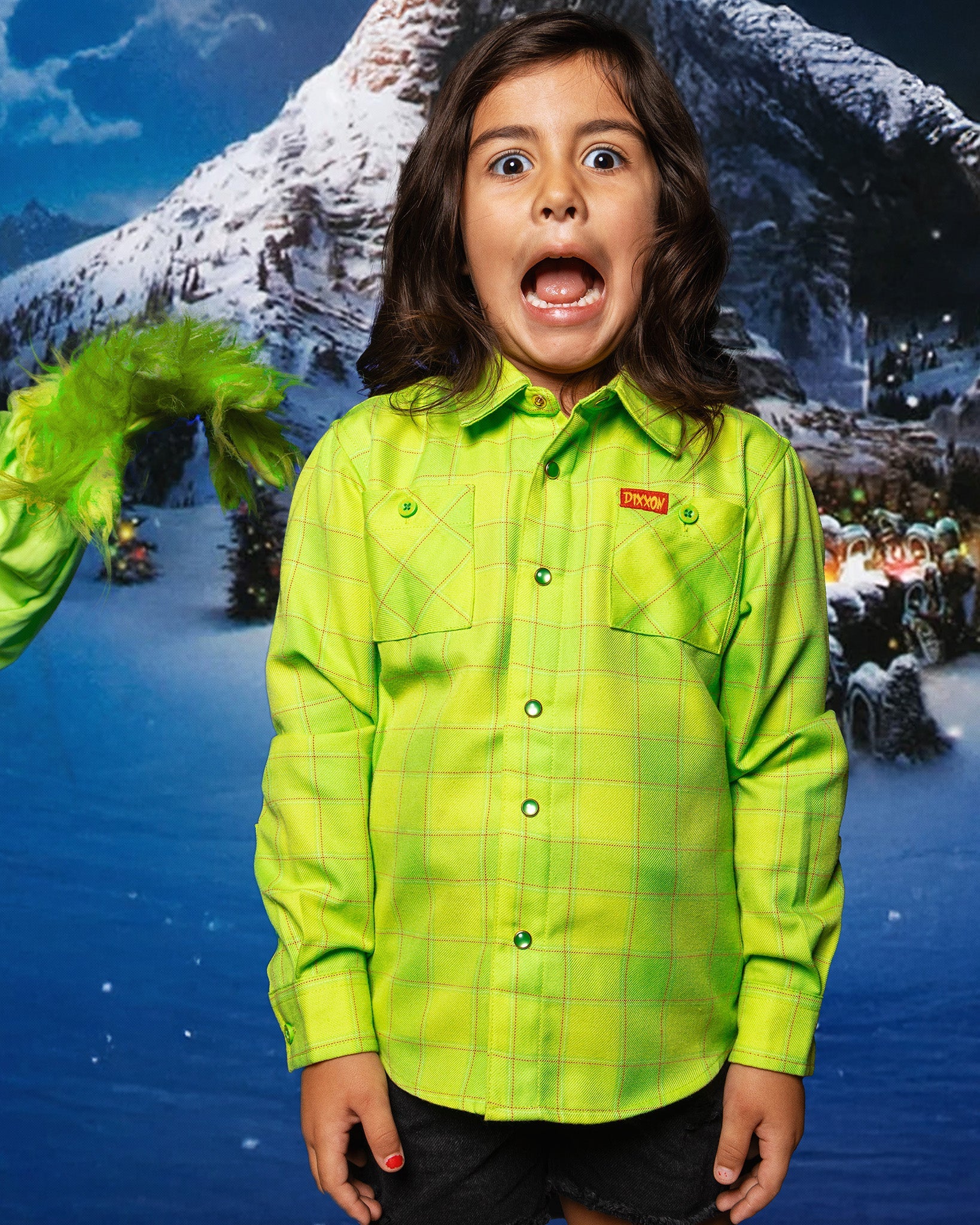 Fun, festive, and ready for holiday mayhem, the Youth Mean One Flannel brings bold green, red, and white plaid to every winter adventure. Soft, durable, and perfect for your little mischief-maker. Quantity limit: 4 per customer.